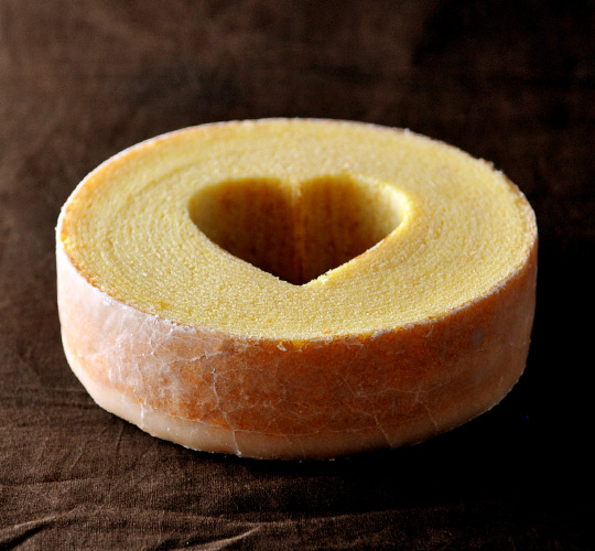 バームクーヘンの年輪の中心にハートの形をあしらい、