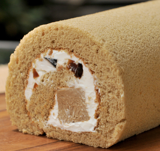 コーヒーゼリーとコーヒー味のプリンをコーヒー風味のスポンジで包みました。