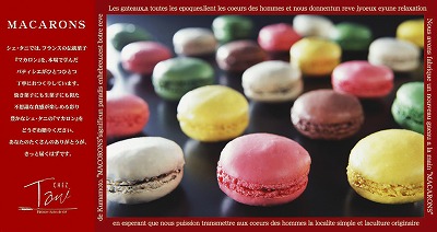 シェ・タニのお菓子に新商品「マカロン」が登場しました。本場フランスで修行中に「マカロン」を焼いていたパティシエが一つ一つ丁寧にお作りしております。焼き菓子にも生菓子にも似た彩り鮮やかなシェ・タニの「マカロン」を是非ご賞味くださいませ。