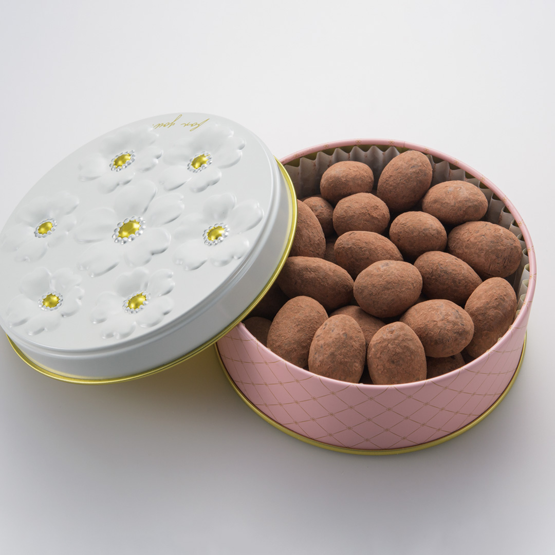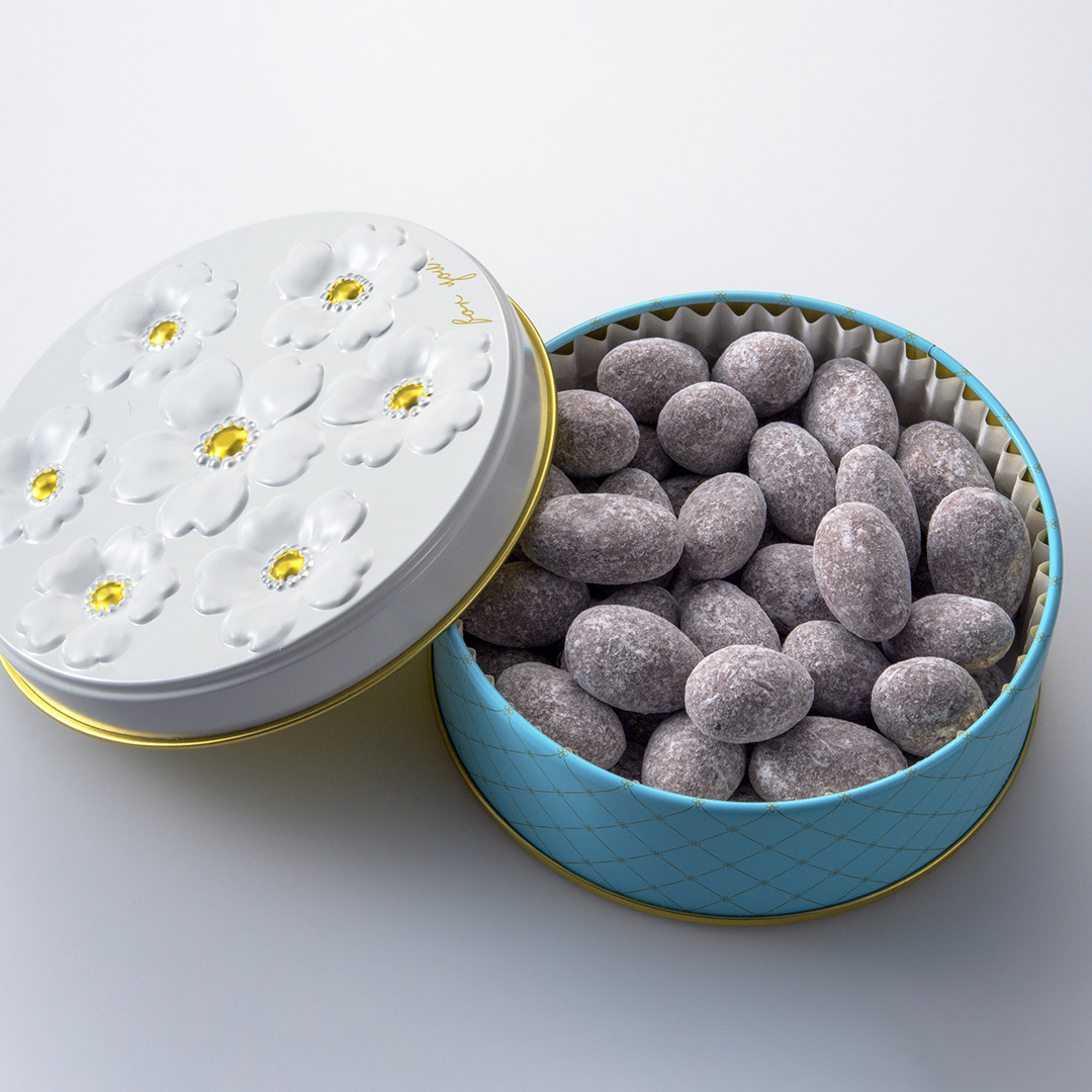 飴掛けしたアーモンドにスイートチョコレートをかけて、ココアをまぶした「アマンドショコラ ココア」、飴掛けしたアーモンドにミルクチョコレートをかけて、コーティングシュガーをまぶした「アマンドショコラ ミルク&シュガー」の2種類をご用意しました。