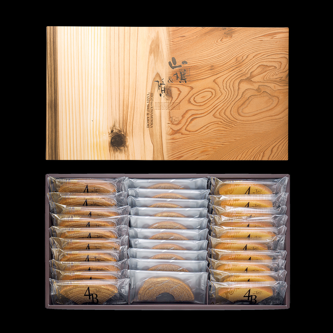 当店のバウムクーヘンには、高級バニラビーンズや生クリーム、卵など厳選されたこだわりの食材のみを使用し、ひとつひとつ専門職人が手作りしております。 サクッ、ふわっ、四種類のバウムクーヘンの食感と味 シェ・タニが自信を持っておすすめする4種類のバウムクーヘンの詰め合わせです。それぞれの食感と4つの味をお楽しみください。食べやすいサイズで、お土産・贈り物にも喜ばれる商品です。 販売期間 通年 セット内容 【12枚入り】・4B 樵×3・4B 山樵×3・年輪ラスク(黒糖)×3・年輪ラスク(プレーン)×3 【20枚入り】・4B 樵×5・4B 山樵×5・年輪ラスク(黒糖)×5・年輪ラスク(プレーン)×5 【30枚入り】・4B 樵×10・4B 山樵×10・年輪ラスク(黒糖)×5・年輪ラスク(プレーン)×5 税込価格 【12枚入り】 2,160円(税込) 【20枚入り】 3,500円(税込) 【30枚入り】 5,440円(税込) 特定原材料等 小麦、卵、乳、アーモンド 賞味期限 製造日より常温で20日 ご購入について 江津店、健軍店、流団店でお買い求めいただけます。 オンラインショップでもご購入いただけます。 12枚入り・20枚入りはオンラインショップと鶴屋店でのみ販売となります。 12枚入り 20枚入り 30枚入り