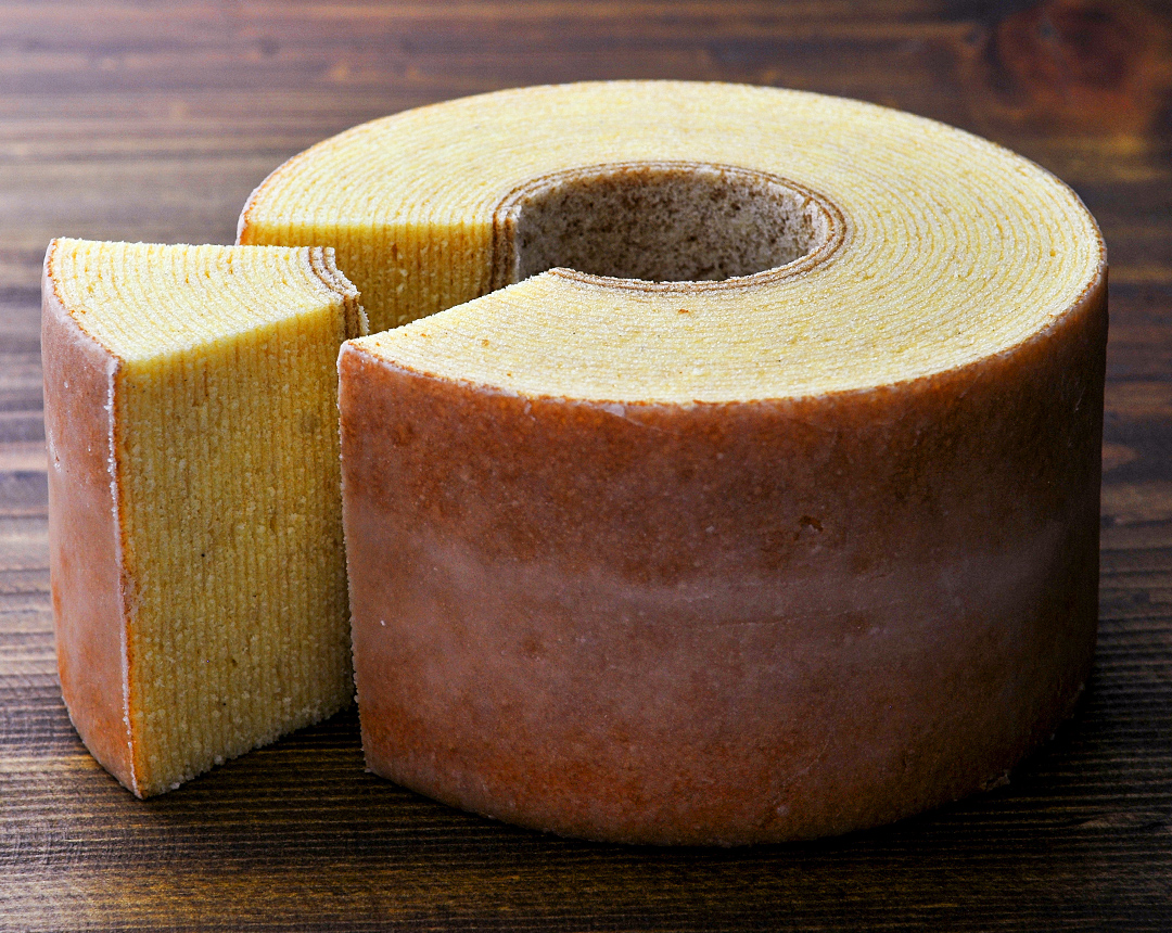 バウムクーヘンは棒芯に生地を薄く塗って焼くことを繰り返して作られるドイツで生まれたお菓子です。シェタニのバウムクーヘンの特長はその柔らかさと厳選された素材にあります。