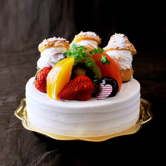 当店自慢のシュークリームをかわいらしくプチサイズに焼き上げ、旬のフルーツとともに飾りました。