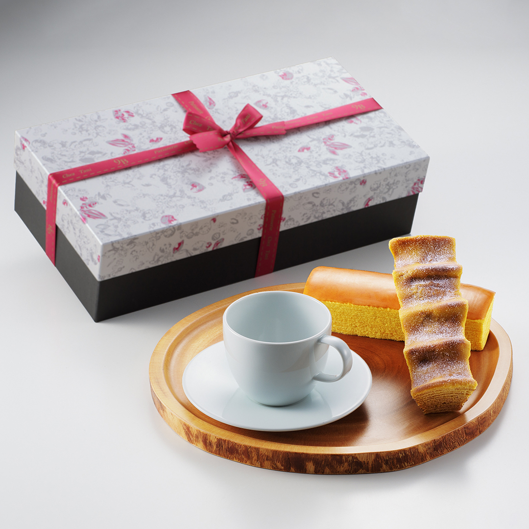販売は終了致しました。皆様のご愛顧ありがとうございました。 シェ・タニと有田焼がコラボして制作したオリジナルの「カップ&ソーサー」と「山樵」「樵」のセットです。 カップ&ソーサーはティータイムにお使いただけます。当店で人気の2種類のバームクーヘン、「山樵」と「肥後木守菓 樵」の2つを同時にお楽しみいただけます。大切な人への想いがいつまでも形として残るように。そんな思いから生まれたギフトセットです。 販売期間 通年 セット内容 1. カップ&ソーサー×1 2. 肥後木守菓 樵(簡易サイズ)×1 3. 山樵×1 税込価格 5,184円(税込) 特定原材料等 小麦、卵、乳、アーモンド 賞味期限 製造日より常温で20日 ご購入について 流団店、健軍店、江津店、鶴屋店でお買い求めいただけます。 オンラインショップでもご購入いただけます。 カップ&ソーサーの裏面