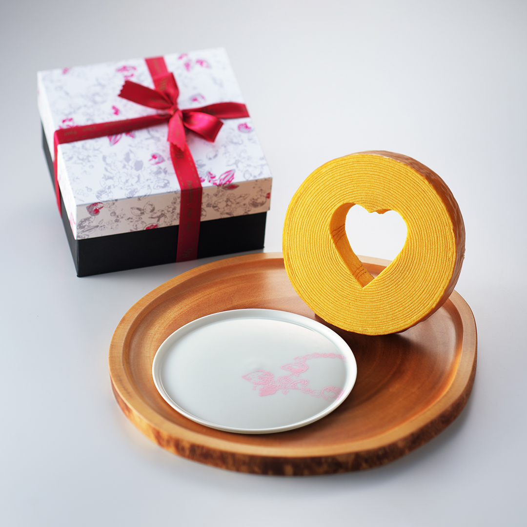 「こころバム」は、「肥後木守菓 樵」の中央をかわいいハート型にあしらった贈り物としても人気の高いバウムクーヘンです。